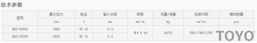 DDX-2000G--DDX-2500G型電動絞盤技術參數: