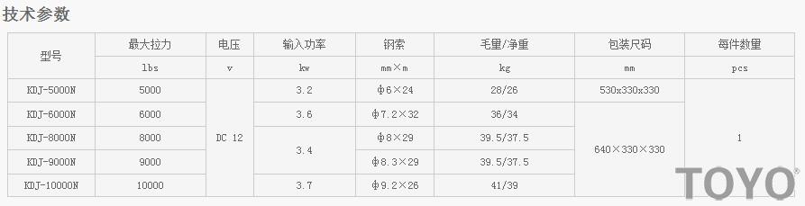 DDX-5000N--DDX-10000N型電動絞盤技術(shù)參數(shù):